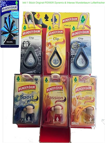 Wunderbaum Original Air Freshener Car Fragrance Clips And Fragrance Bottles Combination Display Vanilla Black Ice New Car Sport Passion 1 X Power Amazon Co Uk Car Motorbike